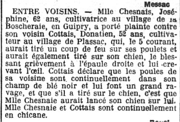 Mort subite - Coup de fusil involontaire mais mortel à Tréhaut (Tréau) - Incendie à Faix - Nominations : cantonniers, enseignement public... - Problèmes de voirie au pont de Beslé - Électrification - Melle Chevrier gagne une bicyclette - Médaille pour François Joubinet - Mises en vente : Le Bézi / Ravalin...