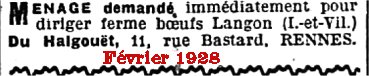 Ordination de Léon Porcher - Mise en vente de la scierie près de la Gare - Où l'on s'inquiète des effets négatifs d'un éventuel barrage du côté de la Roche-Bernard... - Si l'année 1928 fut marquée par l'affaire Gloux, une autre affaire défraie la chronique en cette année 1929 : la famille Harel de la Gare dans la tourmente.